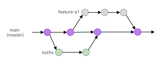 | hotfix | × | • 서비스 운영 중 중대한 버그가 발생해 바로 수정이 필요한 경우 활용하는 브랜치 • 버그가 개선된 코드는 main, develop 브랜치로 병합 |